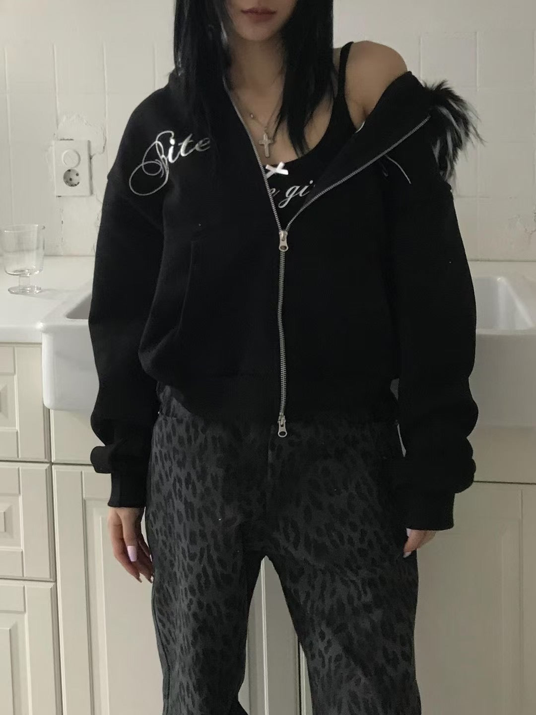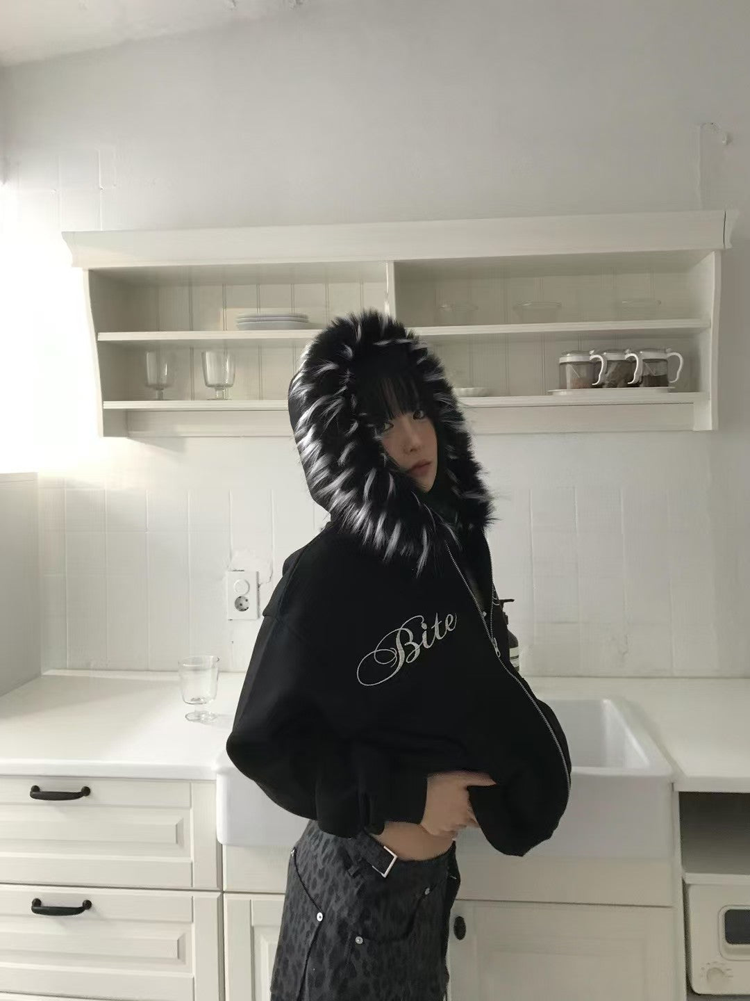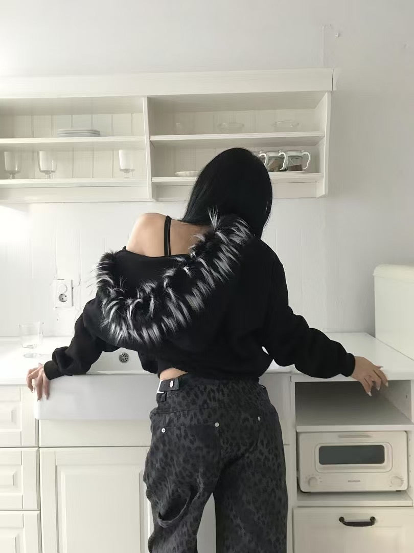 刺繡貉毛外套