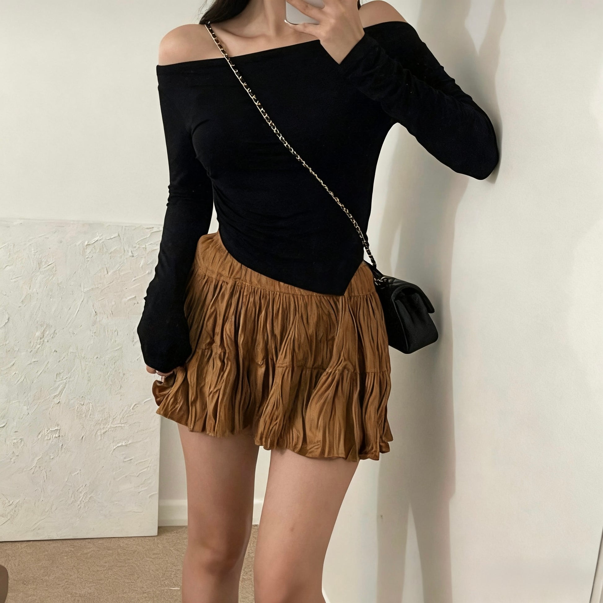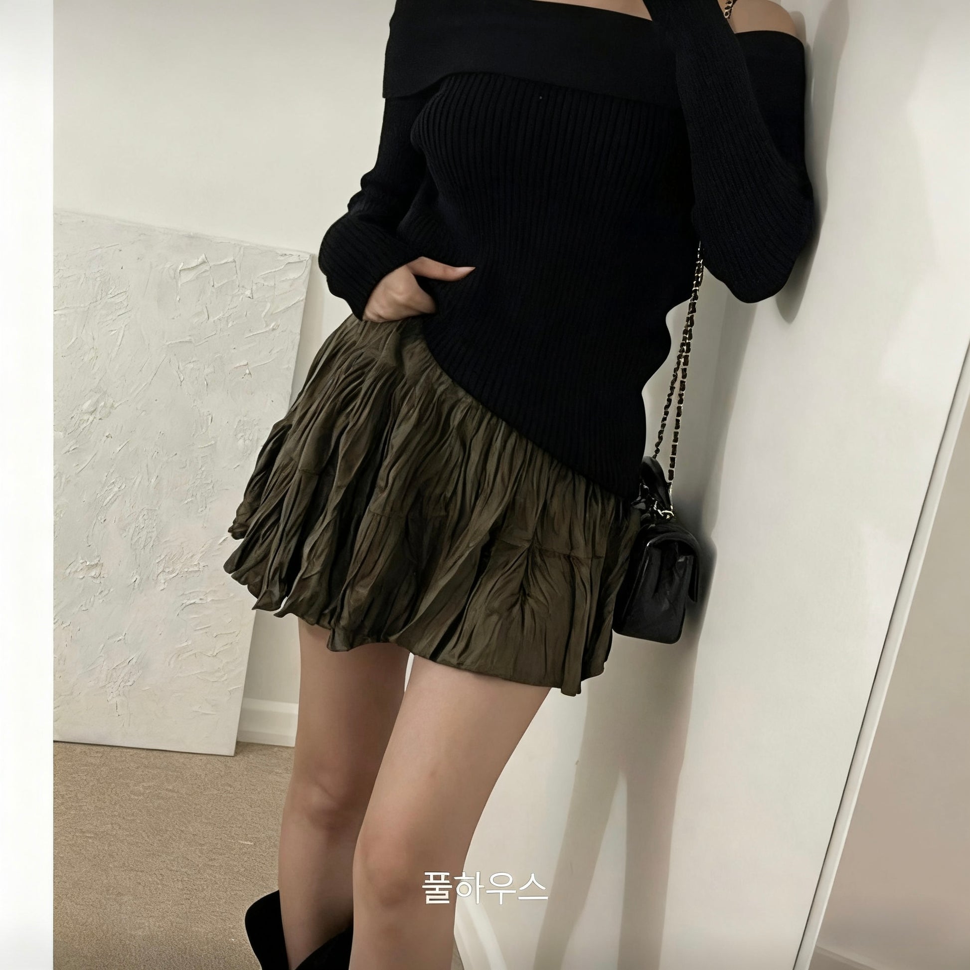 麂皮褶邊裙