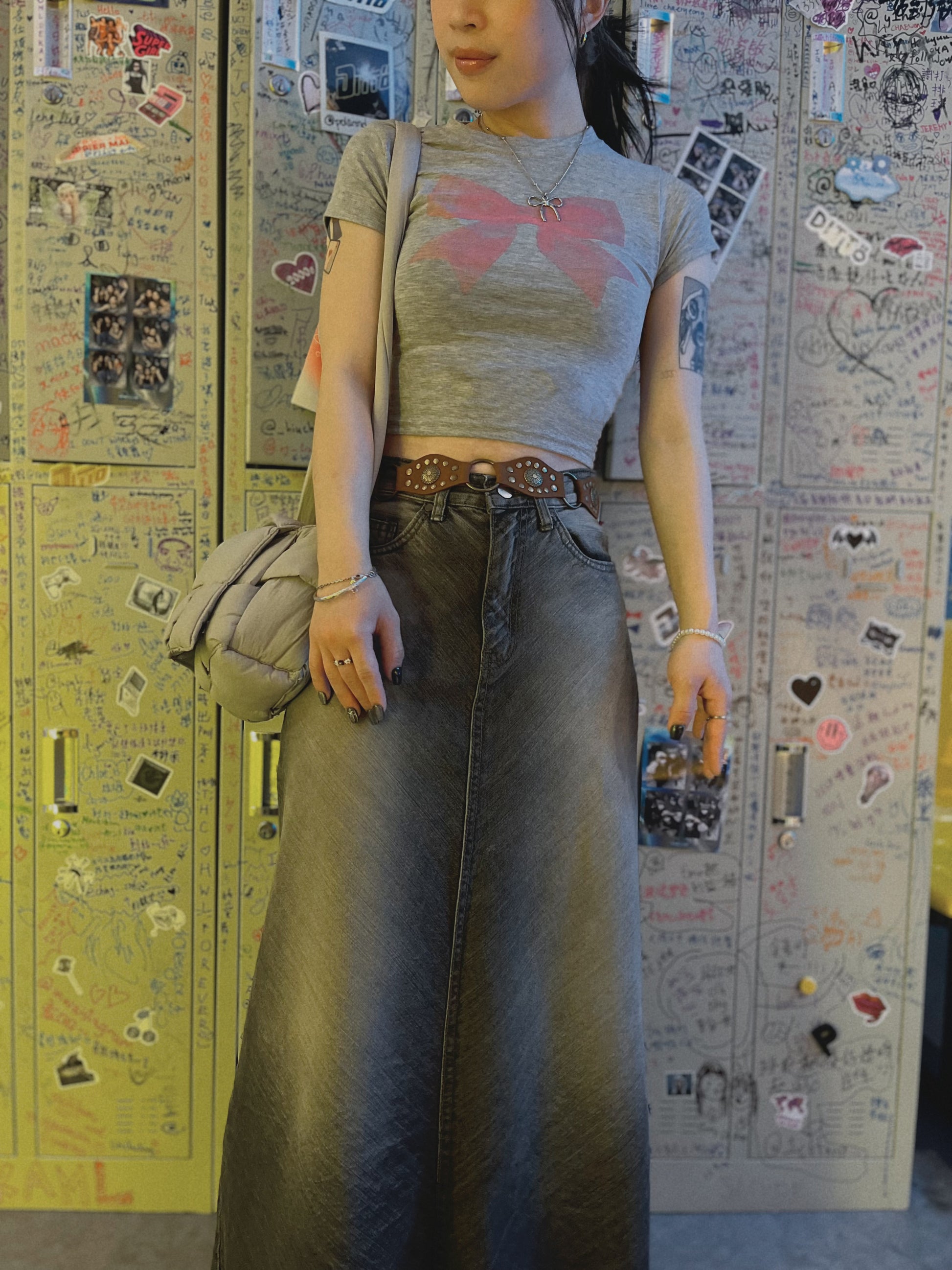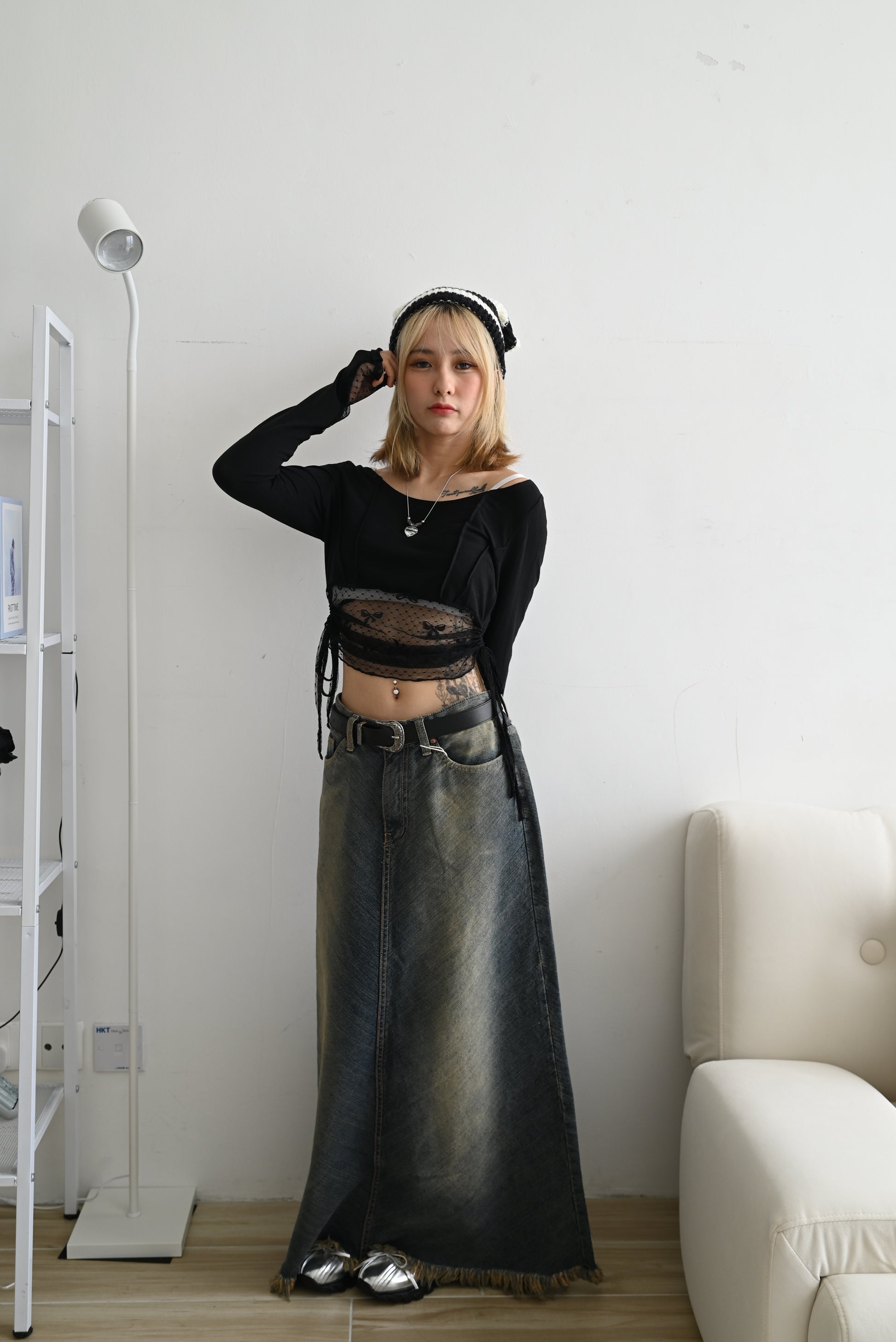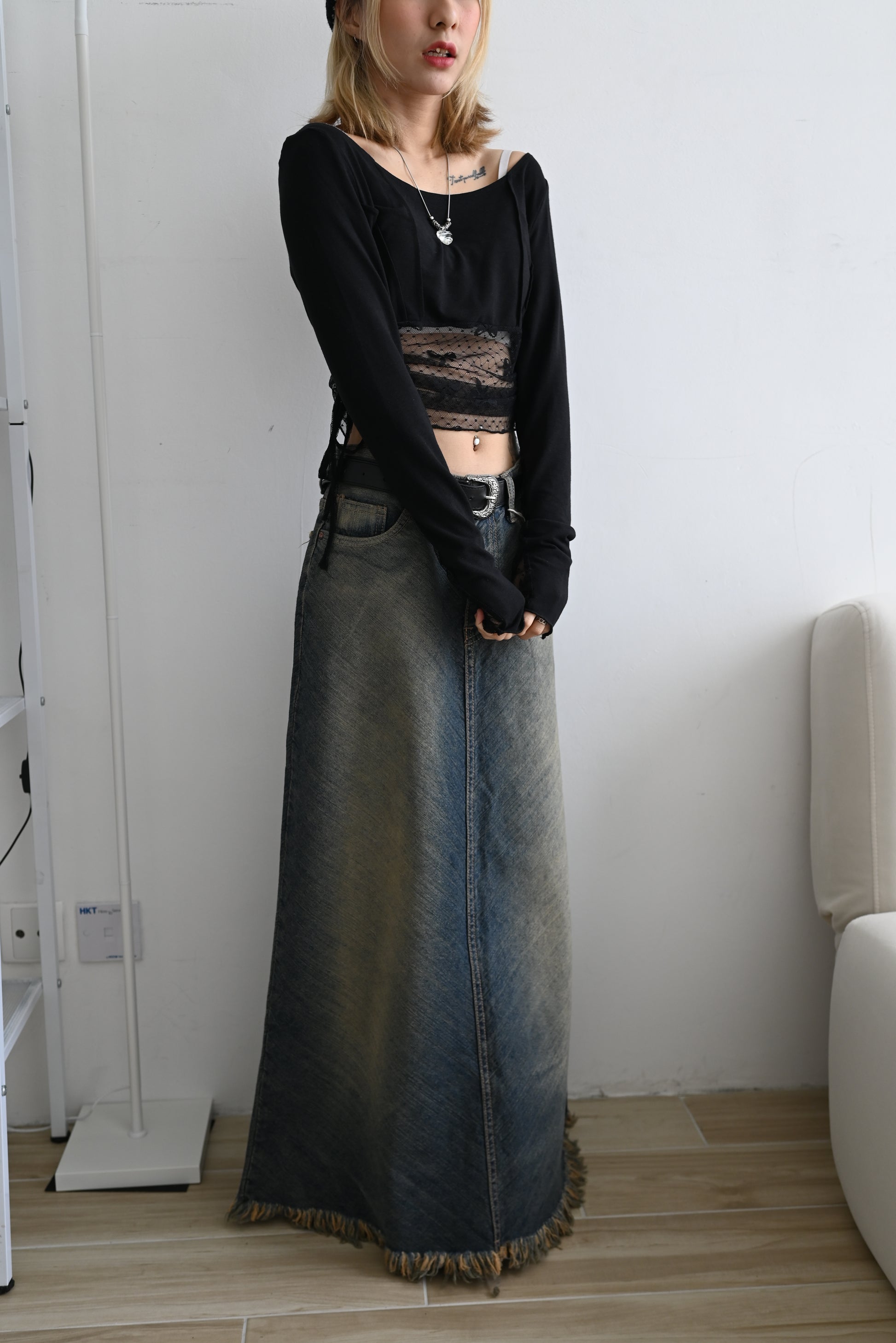 rinsed wash denim long skirt